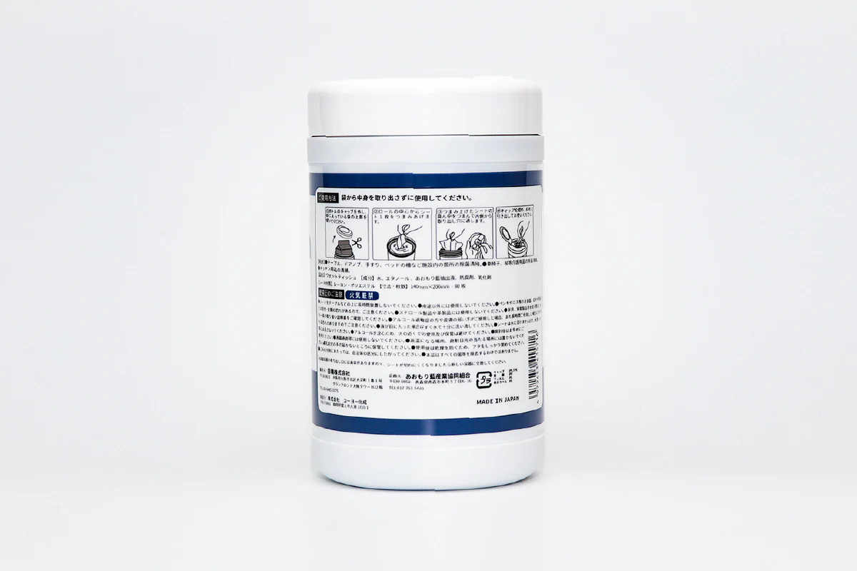 近年多くの効果が発見され注目を集める「あおもり藍」シリーズ。こちらはアルコール入りウェットティッシュに、あおもり藍の天然成分を配合したウェットティッシュです。